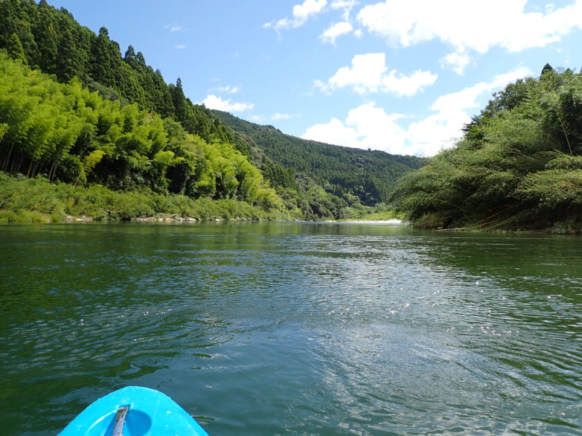 早明浦ダムからの電力供給に合わせた放流量を調整するため、ここからはある程度、流量が安定する。