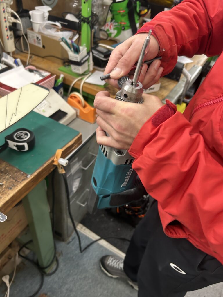 ドリルで穴あけ。