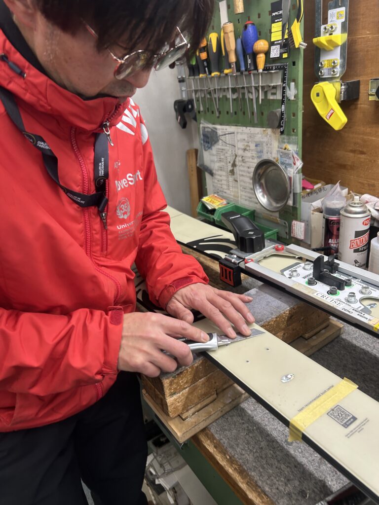 おれはパウダーを気持ちよくロングターンするべく、1cmセットバック!